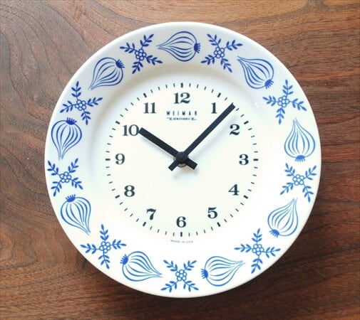 旧東ドイツ製 WEIMAR 陶器フレーム 壁時計 玉ねぎの絵付け 電池式 ヴィンテージ 壁掛け時計 アンティーク キッチンクロック ig1107