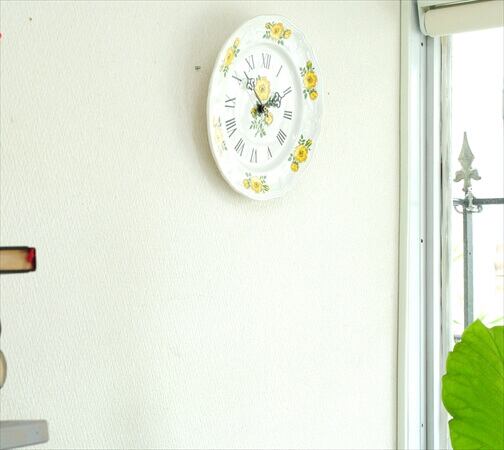 ドイツ製 花柄 陶器フレーム 壁時計 電池式 ヴィンテージ 壁掛け時計 アンティーク キッチンクロック ig1118