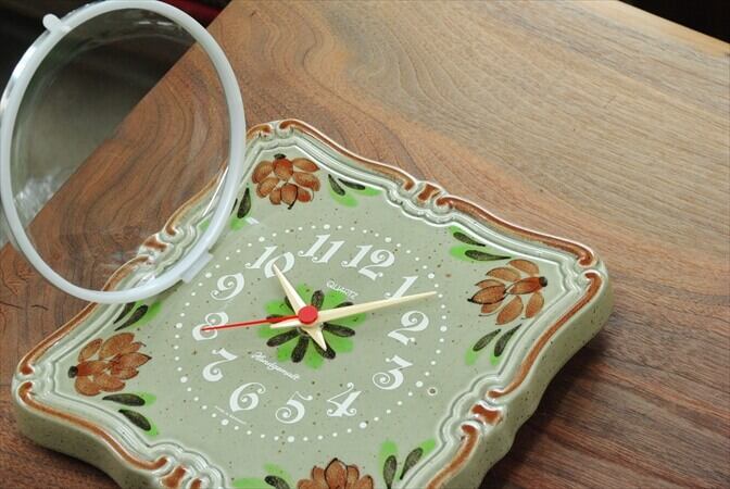 ドイツ製 陶器フレーム 壁時計 ハンドペイント ヴィンテージ 電池式 壁掛け時計 アンティーク ig1136