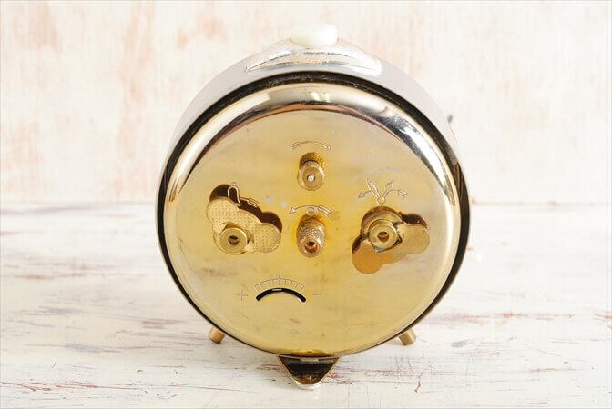 簡易的な動作確認はしており各部稼働しますがビンテージの機械製品のため永続的な時刻/アラームの精緻性は保証いたしかねます。