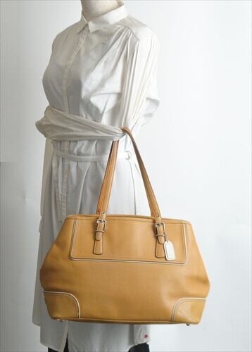 訳あり COACH コーチ ハンドバッグ 肩掛けショルダーバッグ 本革 レザー ライトブラウン 茶色 レディース ifg2109