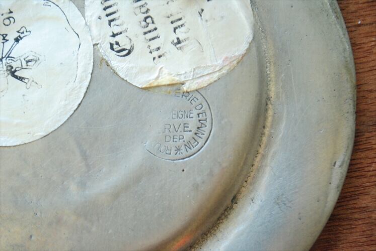 フランスのアンティークとしてよく見られるピュータープレートで、特有のアンティークな風合いをお楽しみいただけます。