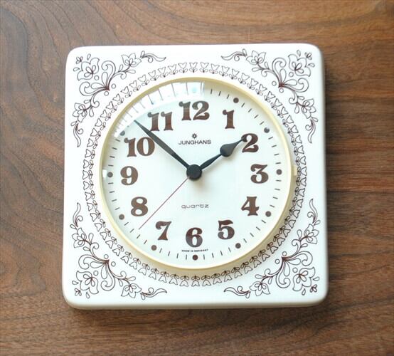 メンテ済み ドイツ製 Junghans 陶器フレーム 壁時計 電池式 ユンハンス 壁掛け時計 セラミック キッチンクロック アンティーク ig1921