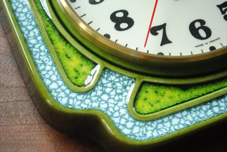 フランス製 Vedette 陶器フレーム 壁時計 電池式 ジャピー ヴィンテージ 壁掛け時計 キッチンクロック アンティーク ig2046