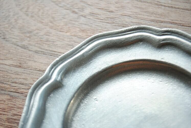 フランス買い付け 古い錫のプレート 9cm 花形リム 豆皿 トレー コースター ピューター ETAIN アンティーク ig2066
