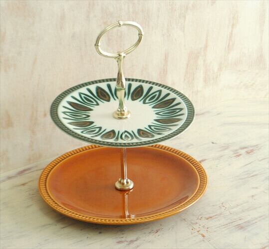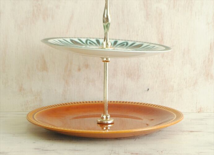ベルギー製 BOCH ボッホ Delta Ellipse ケーキスタンド 2段 アンティーク アフタヌーンティー プレート it0891