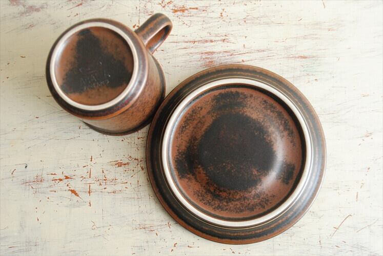 ARABIA アラビア ルスカ 小ぶりなデミタスカップ&ソーサー Ruska 北欧食器 フィンランド 陶器 北欧 ヴィンテージ アンティーク it0994