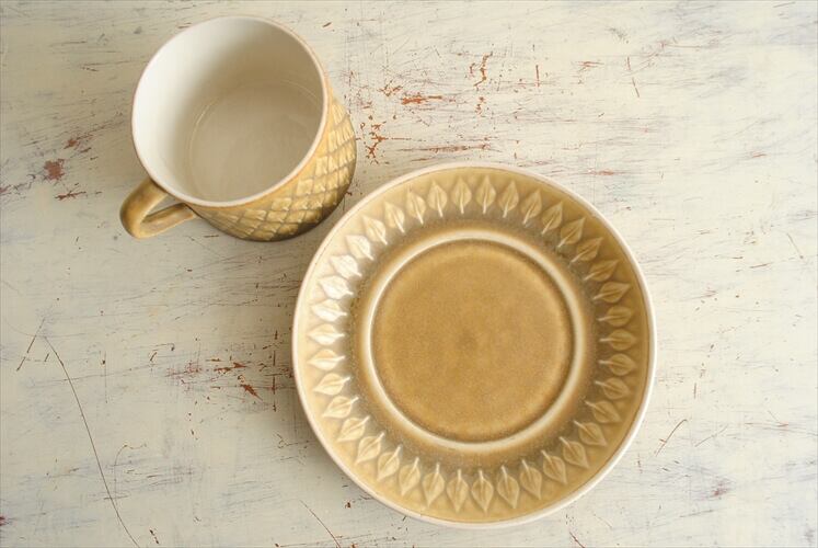 デンマークの陶器メーカーKronjden-クロニーデンのレリーフシリーズ・カップ&ソーサーです。