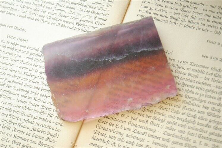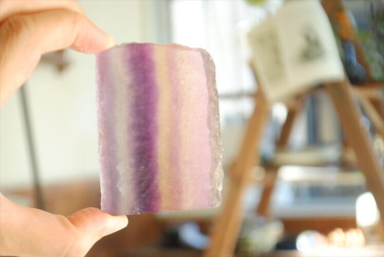 パープルを中心に複数の色層が織りなす神秘さを持ち、スライスというプレート/板状に削り出されたお品になります。