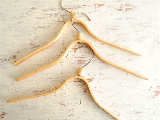 東欧の古い木製ハンガー 3本セット キッズ レディースサイズ ウッド ハンガー ヴィンテージ ショップ 店舗什器 アンティーク ig2120