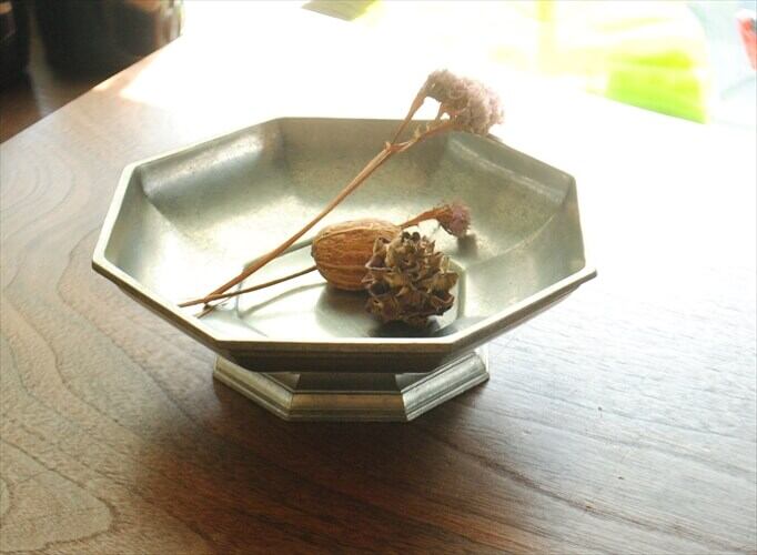 フランス買い付け 古い錫の台付きトレー 16.8cm 希少な八角形 プレート コンポート皿 ピューター ETAIN アンティーク ig2135