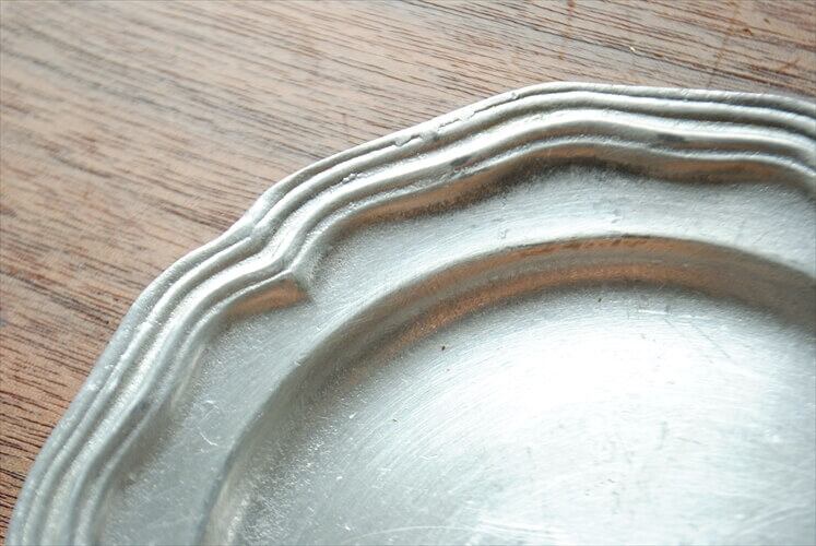 フランス買い付け 古い錫のプレート 11.5cm 花形リム 豆皿 トレー コースター ピューター ETAIN アンティーク dcp ig2179