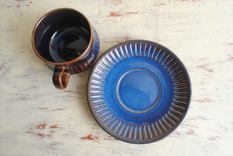 深く味わいのあるネイビーの釉薬に緻密なレリーフが目を引く逸品!