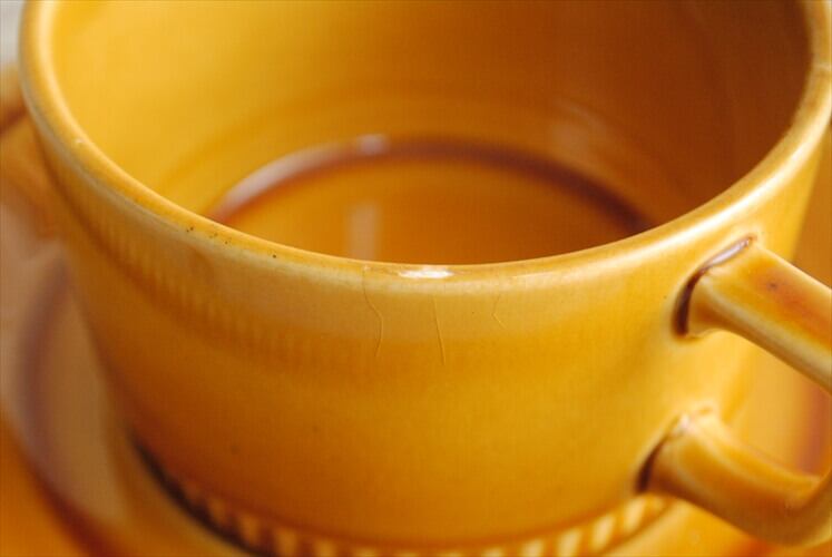 訳あり ベルギー製 BOCH きれいなキャメル色カップ&ソーサー 19cmプレート トリオセット ボッホ お皿 アンティーク it1259