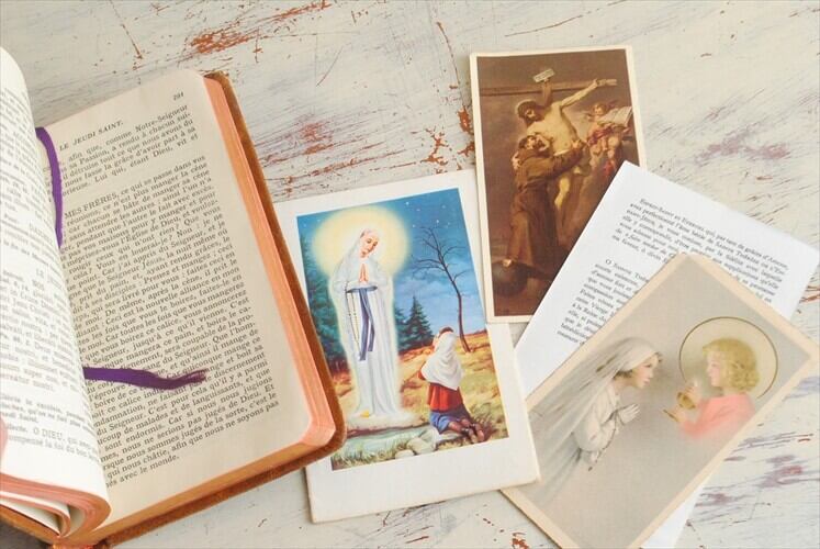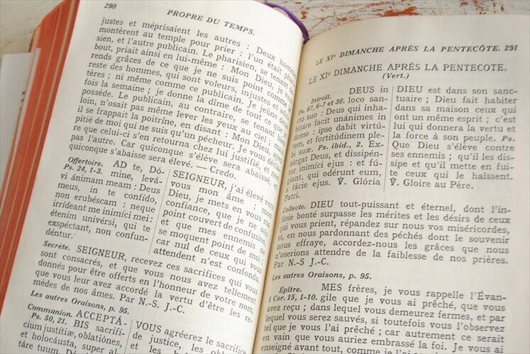 1940年代頃の古いフランス語の洋書 Missel祈祷書です。ベルギーで流通していたものになります。
