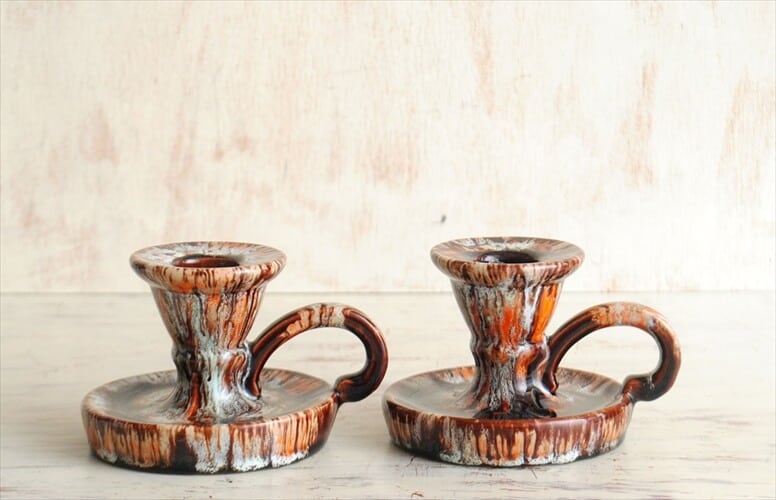 フランス製Vallauris窯の陶器のキャンドルホルダー/ローソク立ての2点セットです。