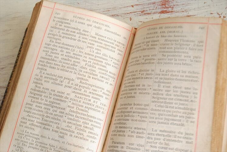 1880年代頃の古いフランス語の洋書 Missel祈祷書です。ベルギーで流通していたものになります。