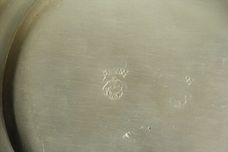 ベルギーとの国境も近いフランス北部のブロカントから届きましたピューター(錫)の豆皿です。