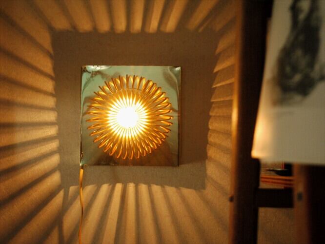 電球サイズはE14、プラグ先端とON/OFFスイッチは日本仕様のものに変換してのお届けになります。サークル状のパーツは着脱可能で、やや外れやすくなっています。壁掛け時に落ちてしまうような事はありません。