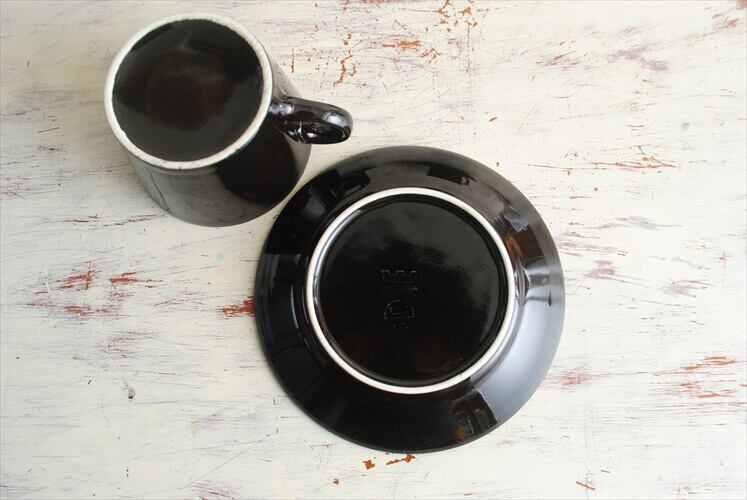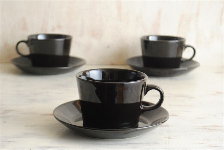 ARABIA アラビア Teema ティーカップ&ソーサー ブラック ティーマ 電子レンジ 食洗機対応 北欧 フィンランド アンティーク it1520