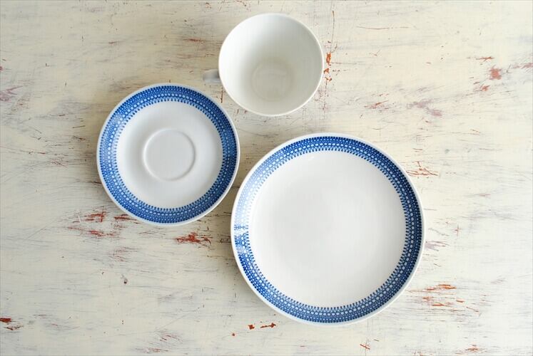 ARABIA アラビア Elisabet トリオセット カップ&ソーサー プレート 北欧食器 フィンランド ヴィンテージ アンティーク_220310 it1567