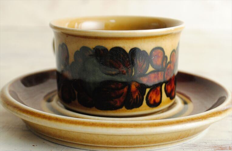 優しい黄褐色のベースに花の絵付けが魅力的なデザインで食洗機対応なのも嬉しいポイントです。