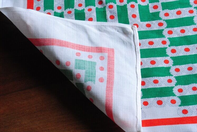 生地の風合いや張りからデッドストック品と思われます。レトロなプリントの感じがいかにもヴィンテージといった佇まい。