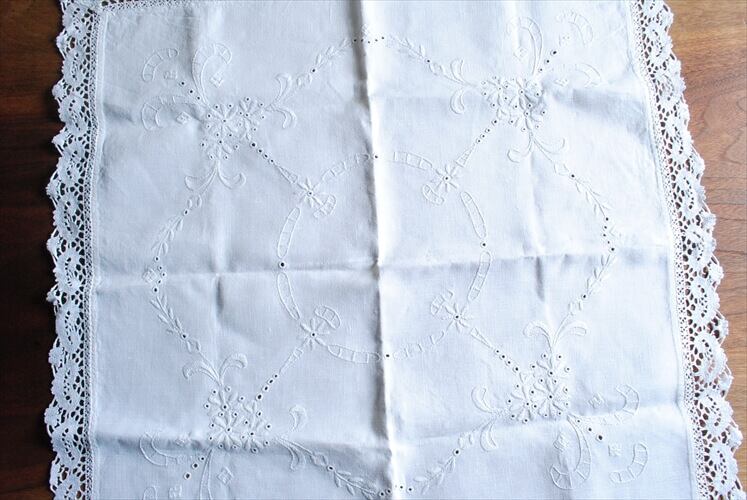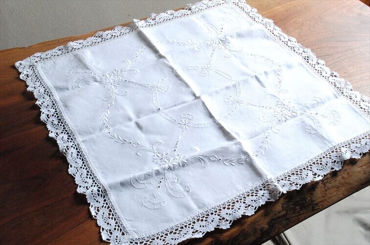 ドイツから 古いテーブルクロス 62x62cm レース編み 刺繍 テーブルリネン ヴィンテージ アンティーク ig2386