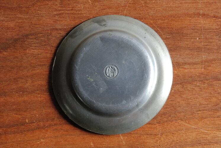 フランス買い付け 古い錫のプレート 10cm 円形リム 豆皿 トレー コースター ピューター ETAIN アンティーク ig2411