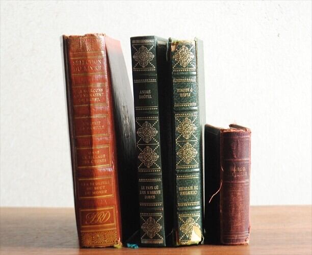 訳あり フランス語 洋書4冊セット 古い洋書 ディスプレイ 古書 アンティークブック インテリア 撮影小物 什器 ig2460