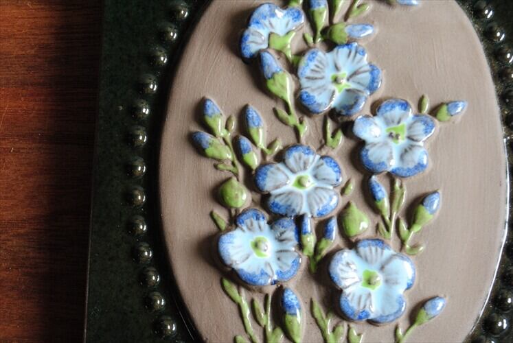 スウェーデン製 JIE GANTOFTA 青い花の陶板 北欧 ウォールプレート 壁掛け陶器 オブジェ インテリア アンティーク ig2491