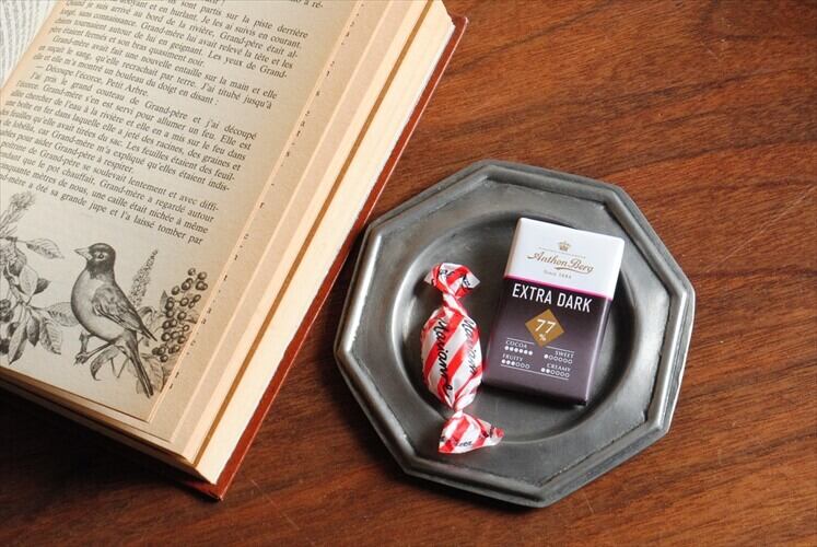 ベルギーとの国境も近いフランス北部のブロカントから届きましたピューター(錫)の豆皿です。