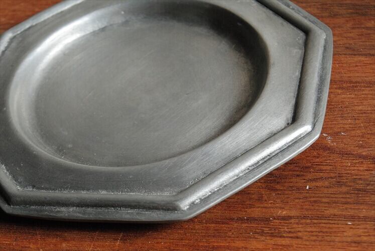 フランス買い付け 古い錫のオクタゴナル プレート 11cm 八角形 豆皿 トレー コースター ピューター ETAIN アンティーク ig2492