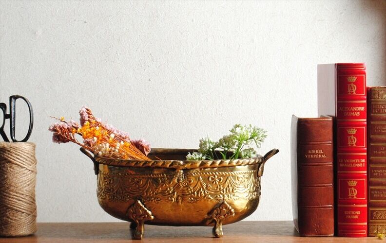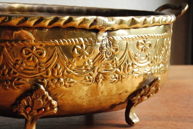 ブラス特有の鈍い光沢が雰囲気あって、レリーフや脚といったディテールも味わい深い仕上がりです。