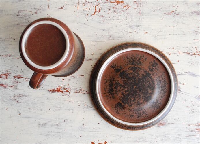 ARABIA アラビア ルスカ カップ&ソーサー Ruska 小サイズ 北欧食器 フィンランド 陶器 北欧 ヴィンテージ アンティーク_220627 it1779