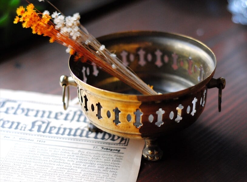 ブラス特有の鈍い光沢が雰囲気あって、レリーフや脚といったディテールも味わい深い仕上がりです。