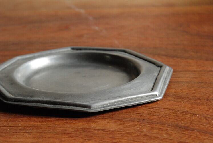 フランス買い付け 古い錫のオクタゴナル プレート 11cm 八角形 豆皿 トレー コースター ピューター ETAIN アンティーク ig2608