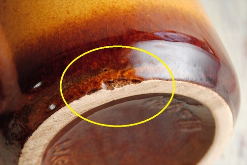 底付近に画像のような窪んだ箇所が見られます。恐らく、製造時からと思われます。