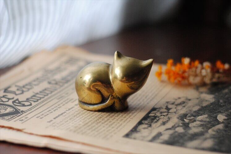フランスのブロカントから届きました真鍮のネコのオブジェです。