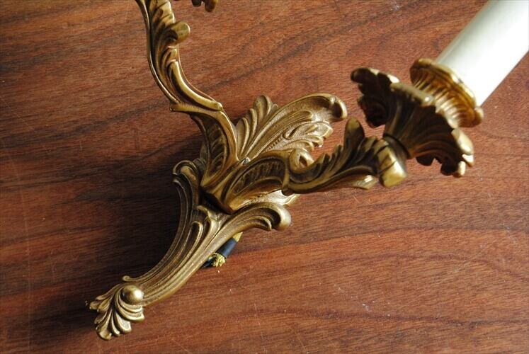 フランス買い付け 真鍮 2灯ウォールライト スコンス キャンドル型 燭台 ランプ ブラス 壁付け 照明 アンティーク ig2691