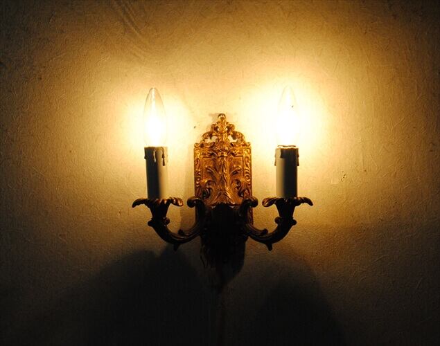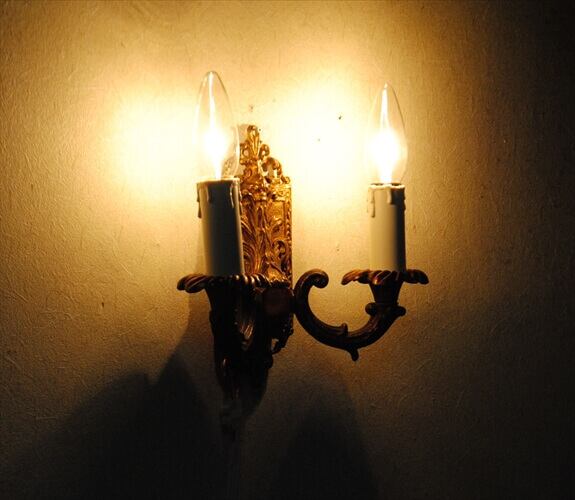 フランス買い付け 真鍮 2灯ウォールライト スコンス キャンドル型 燭台 ランプ ブラス 壁付け 照明 アンティーク ig2692