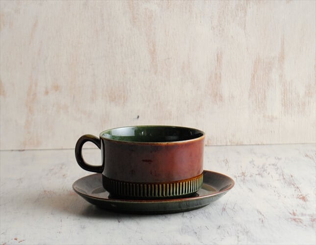 希少色! スウェーデン製 Upsala Ekeby Gefle olive カップ&ソーサー オリーブグリーン ゲフレ コスモス 北欧食器 アンティーク_220831 it1852