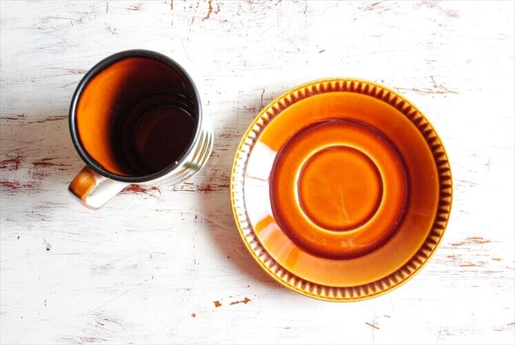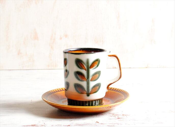 1960〜70年台頃のお品で、やさしく牧歌的なハンドペイントで描かれた葉っぱが魅力的です。