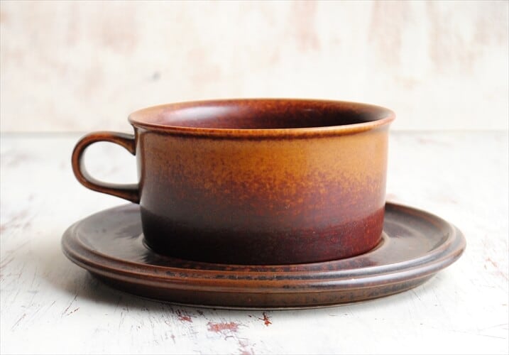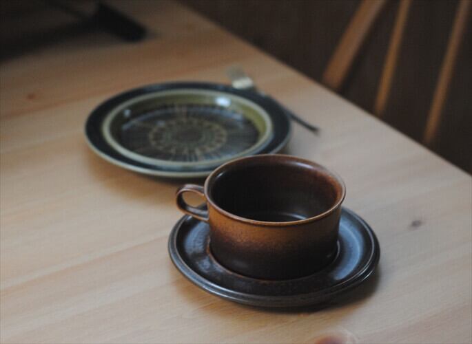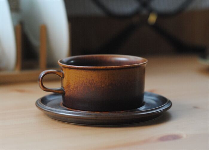 ARABIA アラビア ルスカ ティーカップ&ソーサー Ruska 北欧食器 フィンランド 陶器 北欧 ヴィンテージ アンティーク_221013 it1921