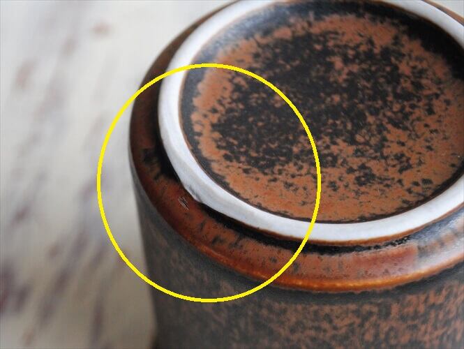 カップ高台に画像のように凹んだ箇所が見られます。ぐらつきはありません。