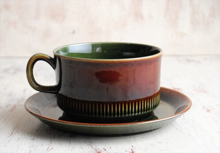 希少色! スウェーデン製 Upsala Ekeby Gefle olive カップ&ソーサー オリーブグリーン ゲフレ コスモス 北欧食器 アンティーク_221018 it1932